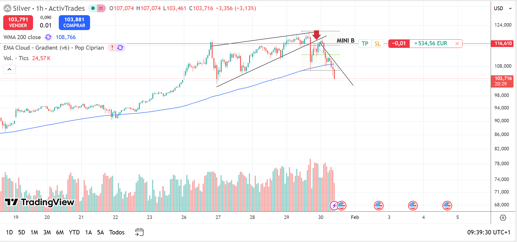 El oro ha superado oficialmente a los bonos del Tesoro USA en las reservas de divisas de los bancos centrales por primera vez en al menos 20 años. Hoy sin embargo, los metales caen con fuerza. En TradingPRO mantenemos los cortos en el futuro de la plata abiertos ayer en la membresía: